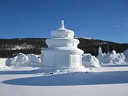 - Великая китайская стена. Ледяная горка «Великая китайская стена» стала самым крупным сооружением из снега (высота 15 м, длина 80 м). На её строительство пошло более 5 000 кубометров снега.