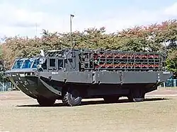 Корпорация JMU производит автомобили-амфибии (минные заградители) для Сухопутных сил самообороны Японии[14].