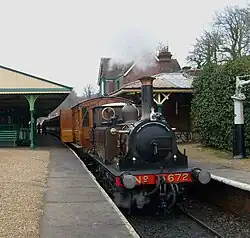 ![W11 «Newport» и W8 «Freshwater» обгоняются на станции Вуттон[англ.] железной дороги острова Уайт[англ.]](./Southern_Railway_Class_A1X_W11_and_W8_Wootton.jpg)
