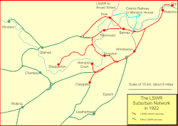 После открытия первой магистральной линии LSWR построило станцию Кингстон, несколько восточнее современной станции Сербитон, которой для деловых поездок стали пользоваться жители Кингстон-апон-Темс. Возможность быстрого доступа в Лондон стимулировала строительство нового жилья рядом с новым вокзалом. Жители Ричмонд-апон-Темс оценили новинку и предложили железную дорогу от своего города до вокзала Ватерлоо. Линия из Ричмонда открылась в июле 1846 года и в том же году стала частью LSWR. Так начала развиваться пригородная железнодорожная сеть, в последующие десятилетия повысившая своё значение.