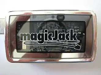MagicJack — поставщик услуг телефонной связи через Интернет (VoIP) в США и Канаде.[1]