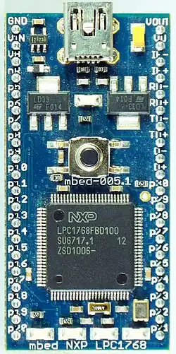 mbed — одноплатный микроконтроллер с сопутствующим инструментарием для программирования.