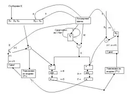 Цикл проходит по всем элементам и его результатом являются значения H1 и H2. На первом шаге цикла переменные H11 и H21 инициализируются значениями X и Y соответственно.