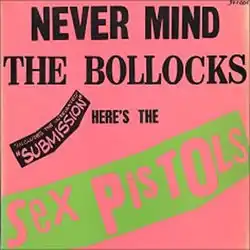 В первоначальное издание Never Mind the Bollocks входило 11 песен. Компания Virgin сделала матрицы 11-песенной версии альбома и в начале октября 1977 года выпустила 1000 экземпляров, часть из которых распространила бесплатно в качестве промоушна. Вскоре Pistols решили включить в свой альбом ещё одну песню «Submission». Вскоре, опередив Virgin Records, в середине октябре импортом из Франции в продажу поступил 12-песенный вариант пластинки, выпущенный на лейбле Barclay Records[24].