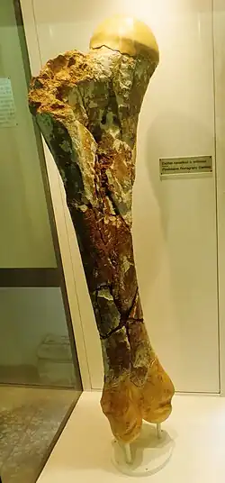 Две неполные бедренные кости были найдены в XIX веке, и их полная длина составляла 160 см. Еще один фрагмент из той же местности был почти на четверть больше; титриметрический анализ дает оценку размера 5,2 метра по высоте в холке и массу 22 тонны[3].