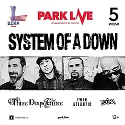- ↑ Группа System Of A Down станет хедлайнером фестиваля Park Live в 2017 г. ТАСС (24 ноября 2016). Архивировано 24 ноября 2016 года.