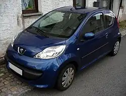 Peugeot 107 — микролитражный городской автомобиль с трёх- или пятидверным кузовом хетчбэк, выпускавшийся компанией Peugeot. Наряду с Citroën C1 и Toyota Aygo является вариантом платформы, совместно разработанной компаниями PSA Peugeot Citroën и Toyota. Согласно договору производителей, для всех моделей использовались унифицированные шасси, передние двери, лобовые стёкла и элементы салона (за исключением рулевых колёс и обивок сидений), а у Peugeot и Citroën внешние отличия сводились лишь к оформлению передка, колпаков колёс и задних фонарей[1]. Технически автомобили имеют много общего со вторым поколением автомобиля Toyota Yaris: кроме бензинового двигателя с минимальными отличиями позаимствованы подвески и рулевое управление с опциональным электроусилителем[2].
