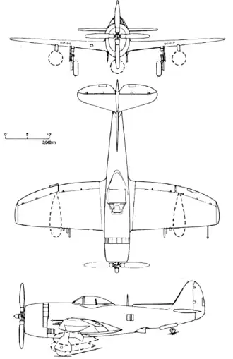 - ХP-47F — опытный с ламинарным крылом. Переоборудован из серийного P-47B. Первый полёт 17 сентября 1942 года.