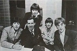 The Beatles с диджеем Джимом Стэггом (в центре) во время своего последнего концертного турне (август 1966 года)