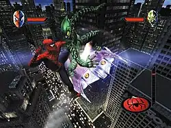 Человек-паук против Зелёного гоблина; по словам разработчиков, одним из ключевых нововведений в игровой серии стали воздушные бои[1]