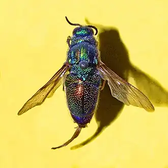 Тело крупное (до 20 мм), блестящее. Третий тергит брюшка над предвершинным рядом ямок сильно утолщен и образует складку, задний край с 4 зубцами. Гнездовые паразиты одиночных ос и пчёл.