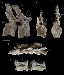 Обнаруженный командой Фанти типовой экземпляр (каталогизированный как ONM DT 1-36) состоял из фрагментов костей таза, нескольких хвостовых и крестцовых позвонков[1][3].