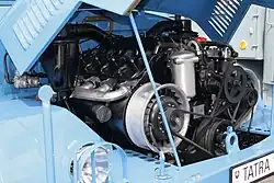 Начиная с 1953 года грузовики укомплектовывали модернизированным мотором Tatra 111 A. Мощность его составляла уже 180 л. с. при 1900 об/мин. Это V-образный 12-цилиндровый дизельный двигатель объёмом 14,8 л; за охлаждение отвечают два осевых вентилятора, а система смазки с сухим картером обслуживается двумя масляными насосами[3][4]. Для обеспечения доступа воздуха в капоте имеются прорези по бокам, а также жалюзи спереди и сверху[4]. Угол развала цилиндров составляет 75°, между блоками цилиндров располагается топливный насос[3], коленчатый вал опирается на семь роликовых подшипников[4].