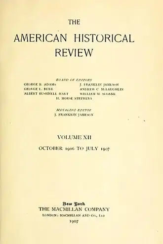 - Jameson J. F.. The American Historical Review, 1895—1920 (англ.) // The American Historical Review. — MacMillan and Co, 1920. — Vol. 26, iss. 1. — P. 1—17. — ISSN 1937-5239.