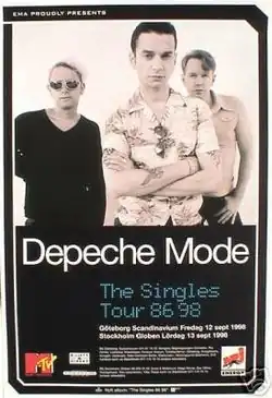 В апреле 1998 года Depeche Mode провели пресс-конференцию в отеле Hyatt в Кёльне, где участниками коллектива был анонсирован гастрольный тур под названием The Singles Tour[11]. Он начался 2 сентября 1998 года. Его первая часть проходила в европейских странах, первое выступление состоялось в городе Тарту, Эстония[12]. Во время европейской части The Singles Tour Depeche Mode впервые посетили Россию[13][14], концерты прошли 5 сентября в Москве (спортивный комплекс «Олимпийский») и 6 сентября в Санкт-Петербурге (спортивно-концертный комплекс «Петербургский»)[12]. Вторая часть тура, начавшаяся 27 октября в Вустере, проходила в городах США и Канады[12]. Также в рамках тура Depeche Mode выступили на рождественском шоу KROQ Almost Acoustic Christmas[12][15], во время которого лидер группы The Smashing Pumpkins Билли Корган вместе с Depeche Mode исполнил песню «Never Let Me Down Again». Последнее выступление The Singles Tour прошло 22 декабря 1998 года в Анахайме, Калифорния[12].