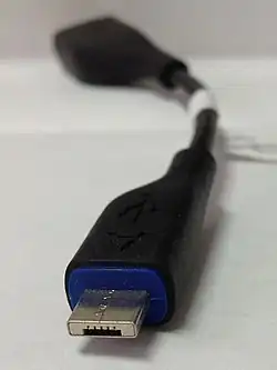 В некоторые из первых мобильных устройств встраивали громоздкий разъём USB-B[9]. Но чаще разработчики шли на нарушение стандарта, встраивая туда несколько более компактный USB-A[9], или придумывали свой разъём. Со стандартом USB 2.0 специально для мобильных устройств появились разъёмы USB Mini-A и USB Mini-B, позднее появилась спецификация USB OTG. В 2007 году появились разъёмы USB Micro-A и USB Micro-B, вдвое тоньше USB Mini- и более надёжные[9]. Ещё один недостаток USB Mini-USB — устройства фиксации были в периферии, а не в кабеле, и при поломке приходилось ремонтировать устройство, а не менять дешёвый кабель[9]. В 2009 году в попытках уменьшить количество электронного мусора разъём USB Micro-B объявили основным стандартом зарядных устройств для мобильных телефонов, но меморандум так полностью и не был реализован — Apple просто сделала переходник с USB Micro-B на свой разъём.