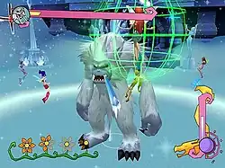Для сражений с противниками игроку доступны волшебный щит и два типа атак, которые усиливаются по ходу игры[17]. Враги делятся на обычных монстров, погибающих после недолгого обстрела волшебными сферами, и боссов, для победы над которыми требуется больше времени и усилий, а также в некоторых случаях требуется найти их слабые места, в которые нужно целиться[11]. Обычные противники не ограничивают игрока в перемещении, в то время как с боссами можно сражаться исключительно в обличье феи, перемещаясь по кругу вокруг них и черпая энергию из энергетических шаров, парящих в воздухе рядом с игроком, одновременно избегая атак противника[12]. В ряде случаев к сражению с боссами в качестве неигровых персонажей подключаются другие Винкс: Флора способна восполнять запас здоровья игрока, а остальные могут совершать различные уникальные атаки. Однако воспользоваться их помощью можно только единожды за бой. Шкала здоровья игрока представлена в виде цветков. Игрок имеет возможность увеличивать максимальный запас здоровья, находя специальные пауэр-апы[K 9] под названием Dragon Seed (с англ. — «Семя Дракона»)[16].
